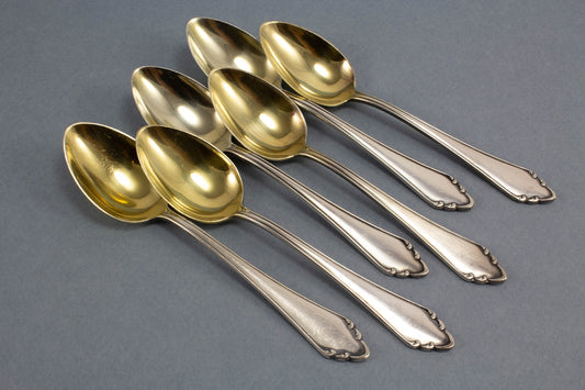 6개의 희귀 모카 스푼, Wellner, 은도금, Wellner Mozart