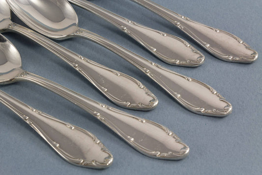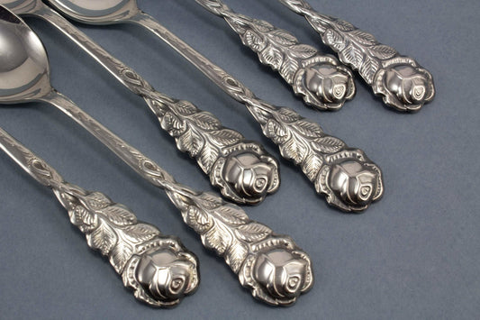 장미 장식이 있는 아름다운 6티스푼, Antiko 은도금