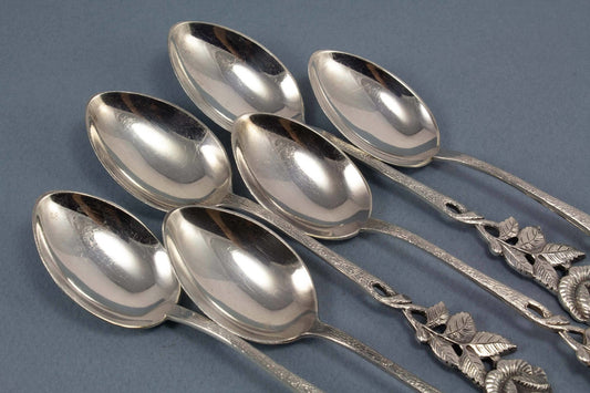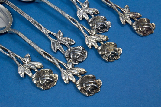 Antiko에서 은도금한 장미 장식의 아름다운 티스푼 6개