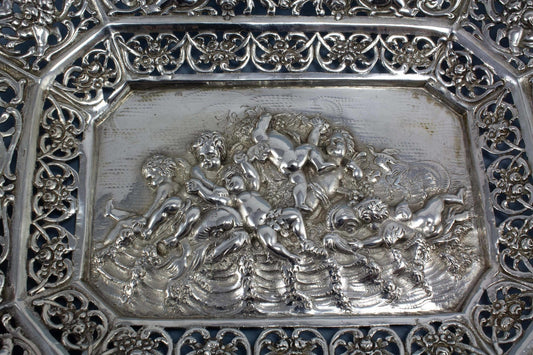 멋진 은그릇, 돌고래가 있는 퍼티, 은, 800, 골동품