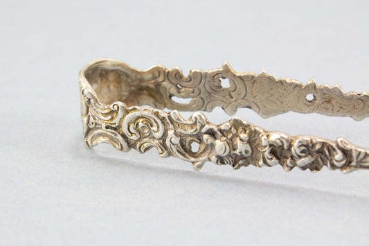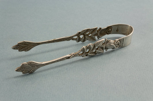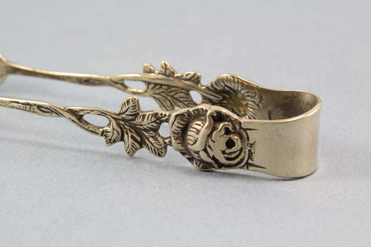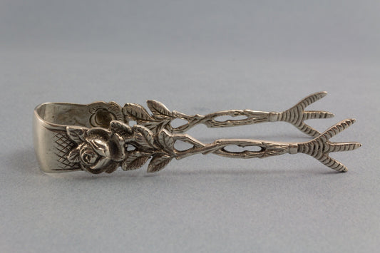 장미가 달린 설탕집게, 앤틱, 은도금