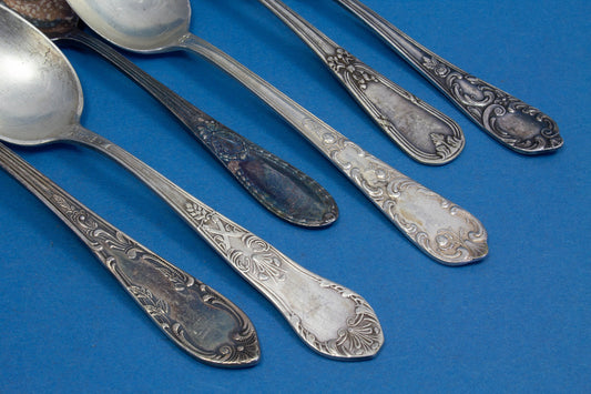 은도금 티스푼 6개, 믹스 앤 매치, 쉐비 시크, 음식 사진