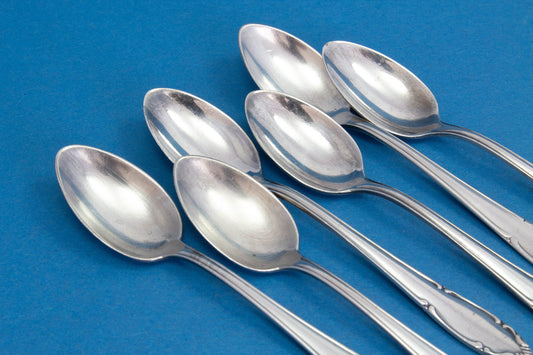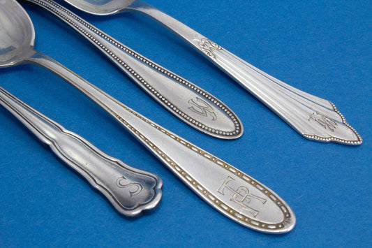 다양한 패턴의 은도금 모카 스푼 4개, 쉐비 시크, 인그레이빙