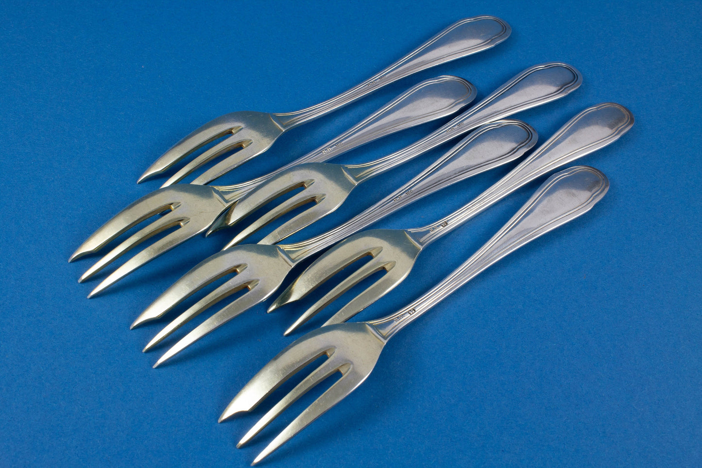 6 schöne Jugendstil-Kuchengabeln von 1900