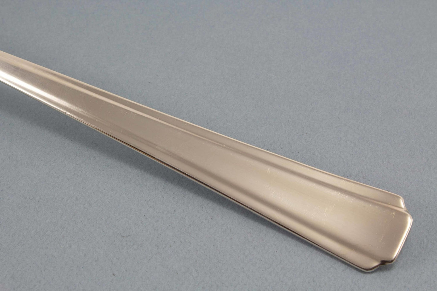 Diese schöne, versilberte Suppenkelle von WMF zeigt ein schönes Art Deco Muster.